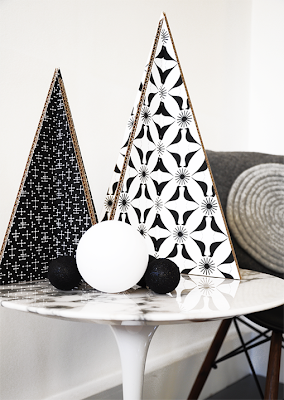 I made the Eames inspired trees with cardboard and some deigns I put together incorporating the Eames bird and the Eames Office logo. I have also used the same pattern as wrapping paper. I think I may re-make the trees using MDF instead next time.